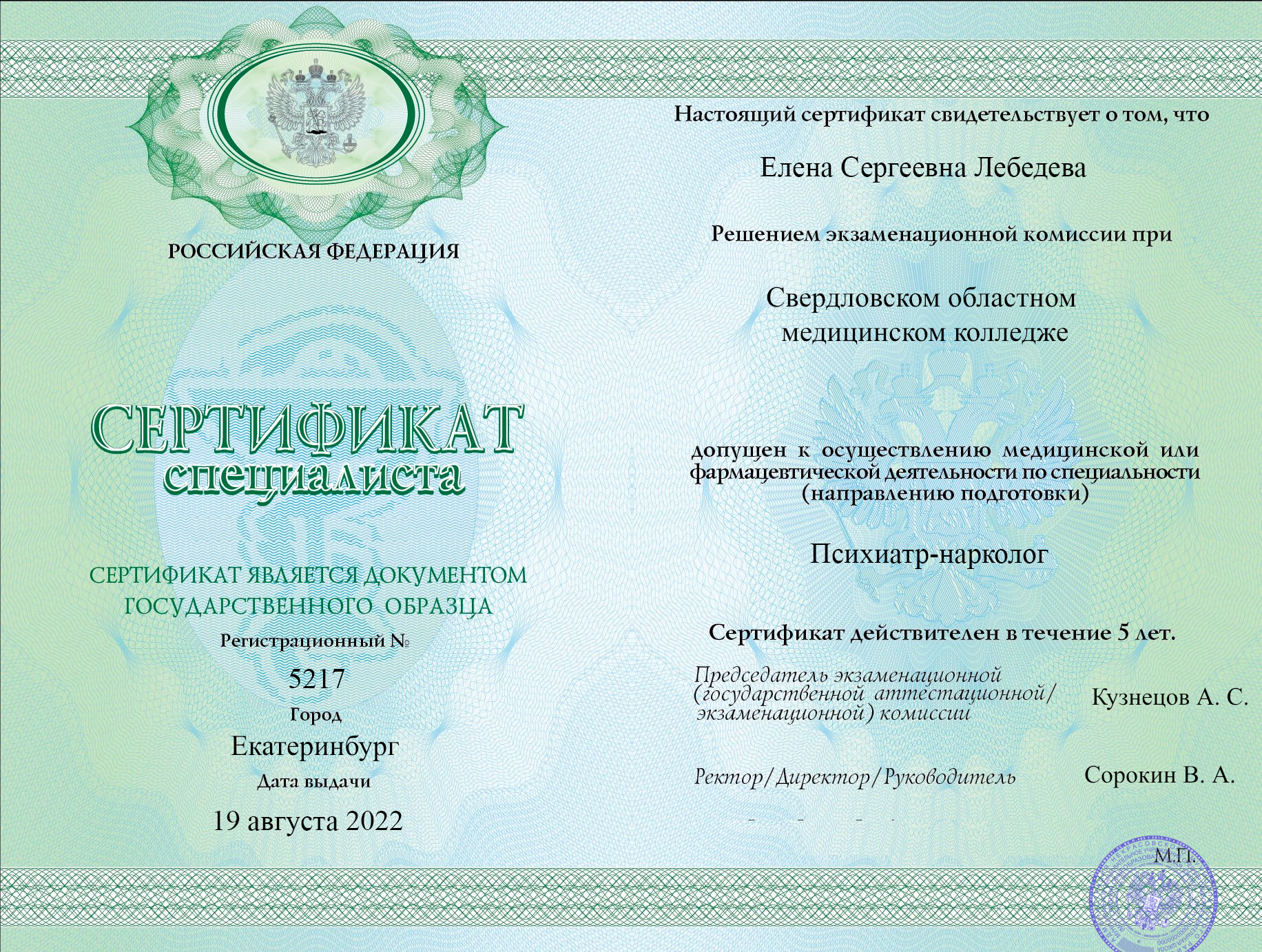Елена Сергеевна Лебедева врач нарколог клиники доктора Стукаловой в Клинцах